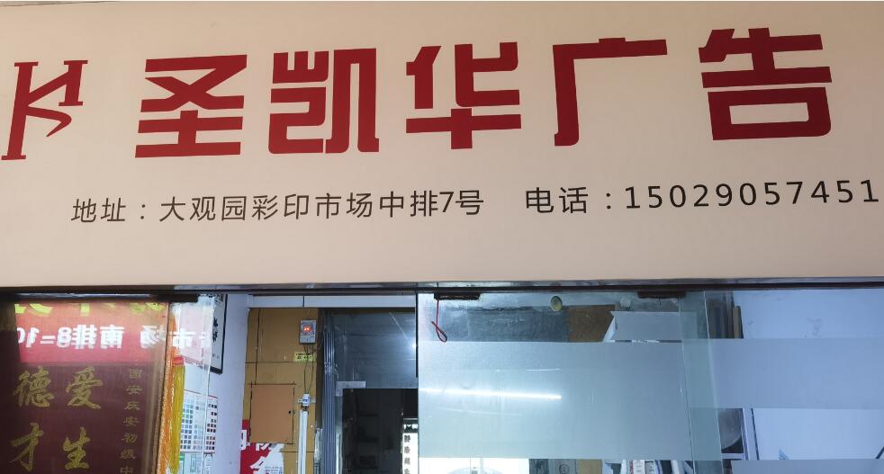 盛凯华广告是一家专业制作宣传展板,宣传海报,老板一家人都是设计师出身,男士会设计操作机器制作海量订单,女老板也是巾帼不让须眉,设计、开机、制作、排版、裁剪整理打包,样样都精通,样样都熟悉,随便拉出一个制作好的成品,就可以媲美众多男老板制作的成品,所以,当很多的消费者路过中排:007号盛凯华广告时,都被制作好的成品案例吸引的驻足沟通,当看到盛凯华广告商铺整洁的环境时,更让人感觉到女老板与众不同的清秀之美,下订单,不犹豫,因为,人美心善的老板一定会对待工作更认真,找宣传展板制作,直接呼盛凯华广告吧!