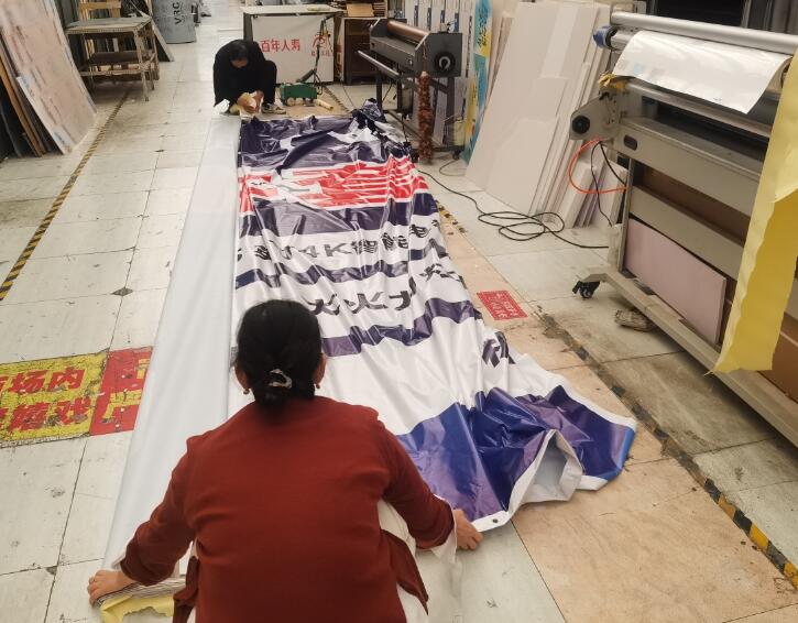 这种大型的墙体喷绘广告制作可真的不是一件容易的事情,从设计加工,然后用机器一块一块把画面打印出来,还要拼接,难的就是拼接这道工序,每个画面都要对接的天衣无缝,如果有瑕疵看上去就不太美观,会影响到整个墙体的宣传效果,汇通广告坚决不会允许出现这种事情。
