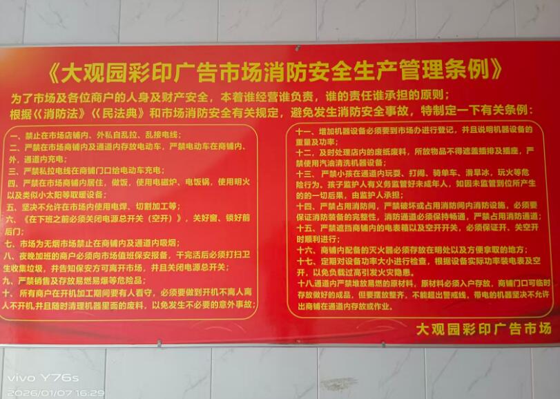 生意要兴旺,必定要大伙一条心,只有经营的项目齐全了,消费者才会有选择和对比的心态,大观园彩印广告市场这方面就做的是超级给力,印刷、设计、雕刻、写真、喷绘、户外安装、锦旗和发光字等等只要是印刷方面相关的,市场都有好多家商户可以供你君选择,供你左三圈右三圈对比对比,下订单的客商可以说每天都是一波又一波。
