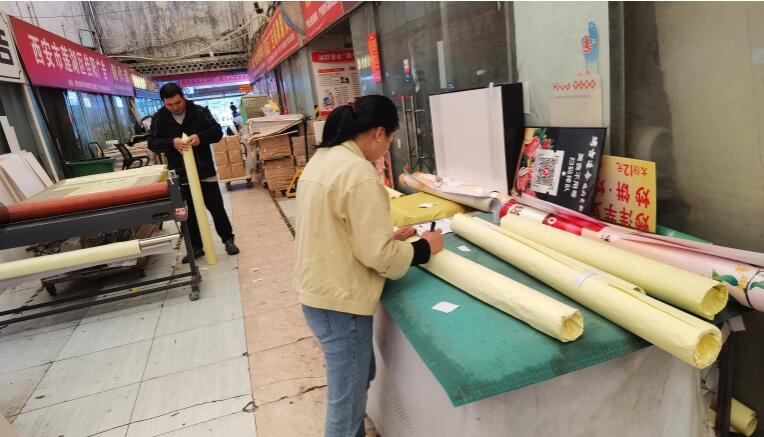 近些日子,大观园彩印广告市场中排:005#.005+1#.006#号瑞明广告的张俊张老板就比较用心,因为天公不太做美,连绵的小雨下个不停,做好的包装产品不仅要认真打包好,还要多裹上几层防水的材料,张老板亲自上手,每个宣传海报成品都是里三层外三层的打包好,准备在雨小一点的时候就给客户尽快送货。