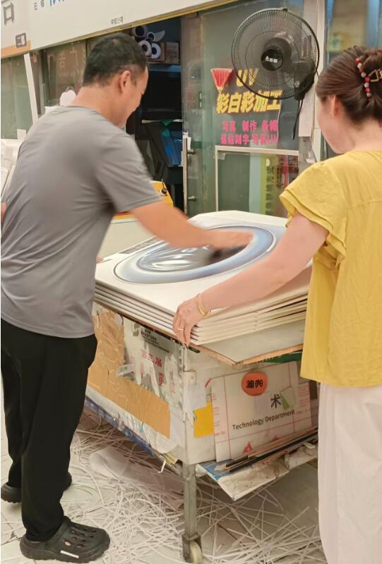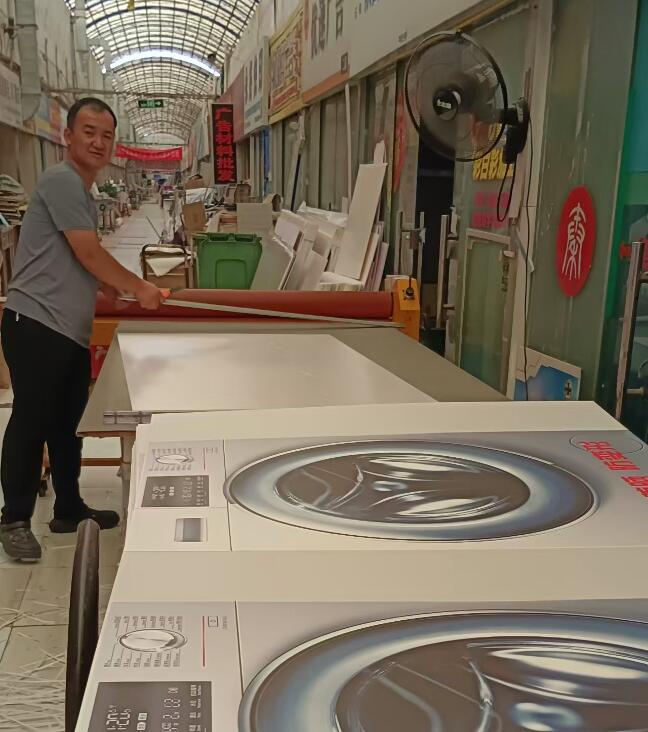 这不,刚接了一批彩白彩印制的广告图片急活,还有一批洗衣机外壳的KT板急活,夫妻二人马不停蹄地开机赶制,一天内把KT板订单制作完毕,看着摆放好的成果,夫妻二人终于是舒了一口气。
