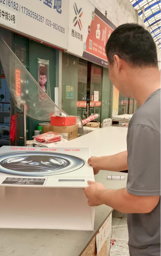 还是带大伙欣赏一下云恪广告夫妇二人刚加工好的洗衣机外壳KT板订单吧,要是不仔细看,还以为是几台成品摆放在通道中呢,专业、精湛的工艺活生生的展示在大家眼前,有彩白彩印制的广告图片和KT板展板设计制作的订单,还是赶快来大观园彩印广告市场三厅中排找云恪广告吧!13649216182/17392556267