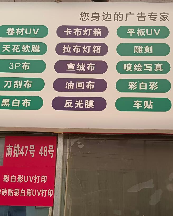 大观园彩印广告市场南排1101#的鹏誉广告,UV彩白彩设计制作的专家,想把一张构图变成触手可摸的图片吗?就到大观园三厅找鹏誉之卓信广告吧!张老板。☎18165399221